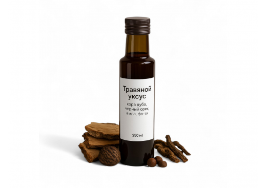 Травяной уксус с корой дуба, чёрным орехом, амлой и фо-ти — натуральный продукт для красоты, здоровья и укрепления организма. На основе яблочного уксуса и уникальных растений он сочетает в себе древние традиции фитотерапии и современные подходы к натуральному уходу.