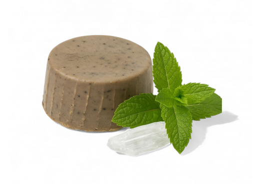 Натуральний твердий шампунь на м’яких ПАВах — Sodium Cocoyl Isethionate — з додаванням кастильського мила, гідролату ромашки та олій створений для дбайливого очищення шкіри голови та волосся без пересушування. Освіжаючий ментол забезпечує приємне охолодження, покращує мікроциркуляцію та продовжує відчуття чистоти.